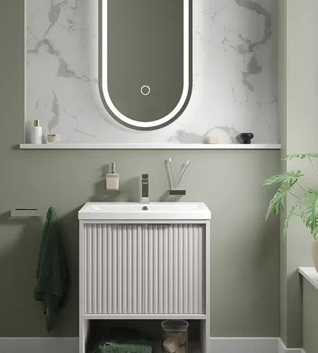 We manufacture bathroom vanities and cabinets in various materials, including PVC, MDF melamine, veneer plywood, tech-veneered plywood, and particle board. All our products are manufactured to the highest standards, with a focus on durability, water resistance, and modern design.