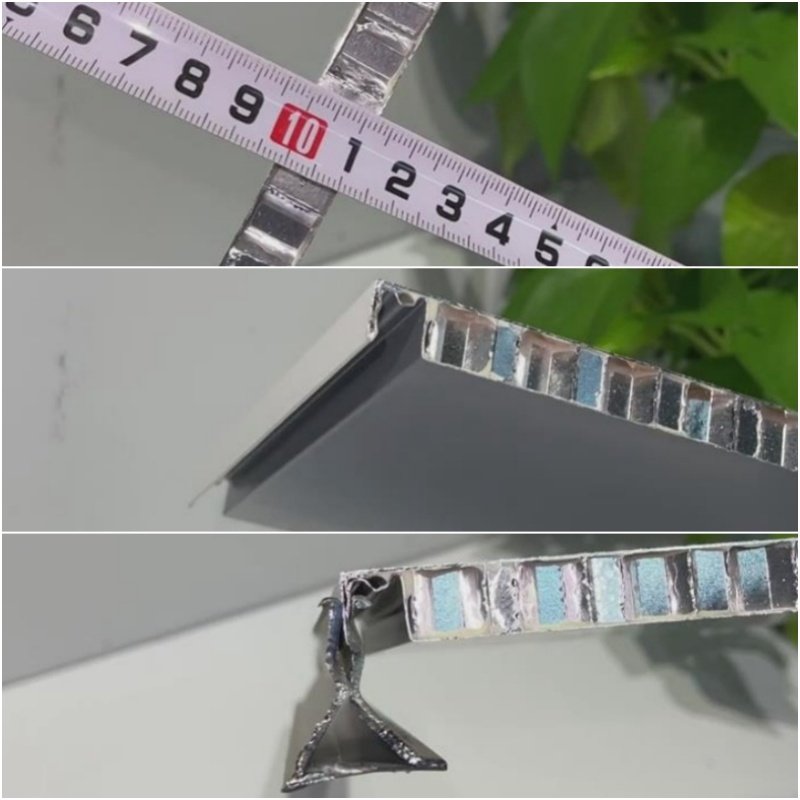 It is the same as the aluminum honeycomb material structure used to make cabinets. When used as a ceiling, the thickness is only 7 mm or 9 mm, with aluminum edging.