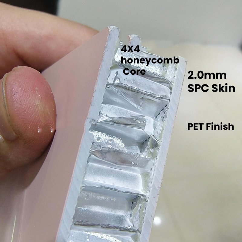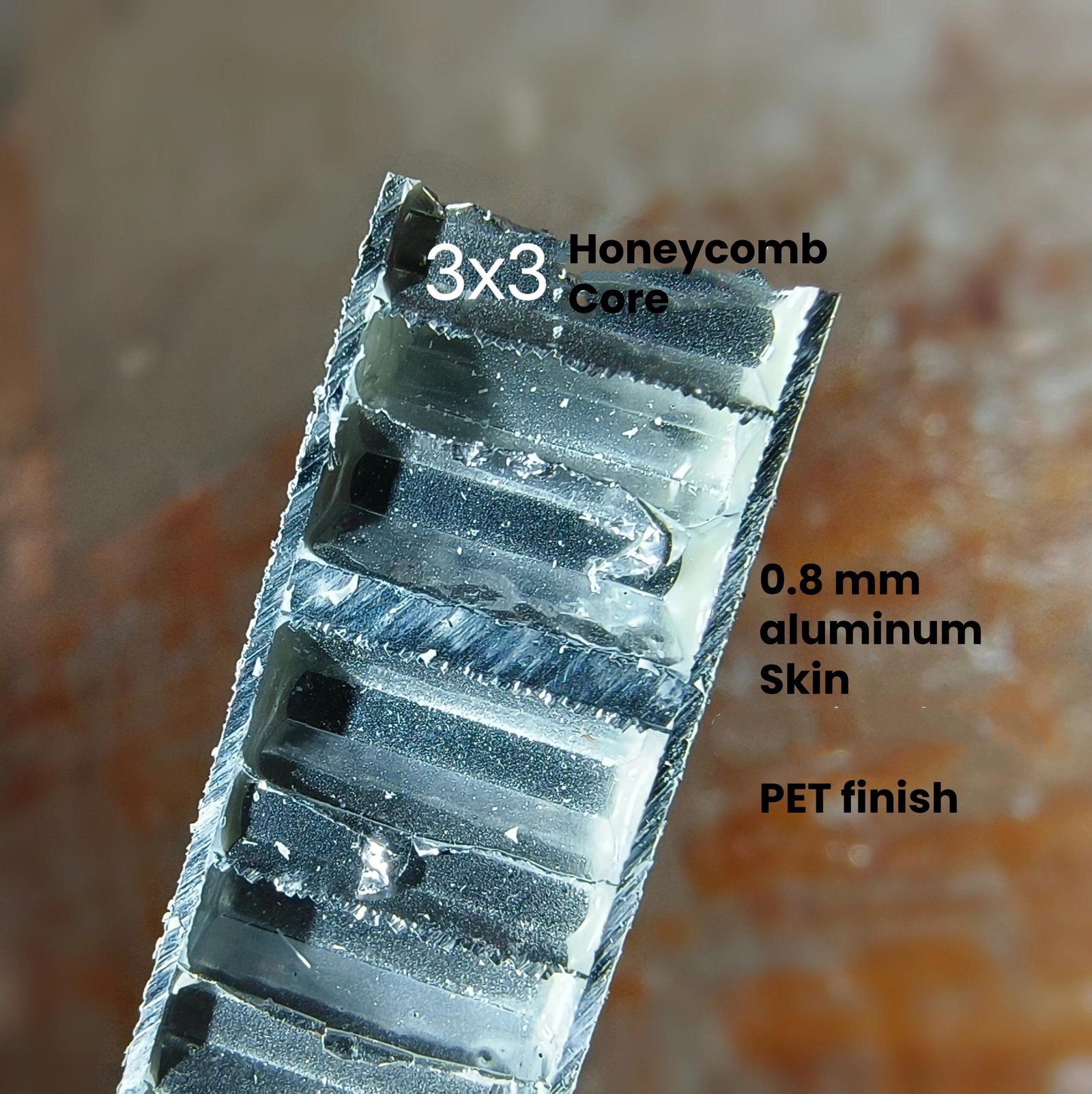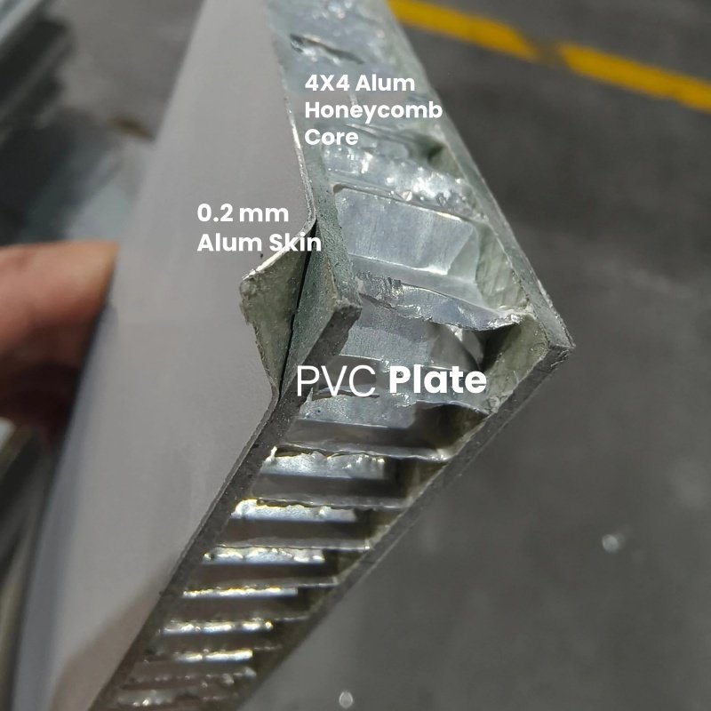 base | 0.8-1.2mm Alum double sides skins,Reinforcement ribs in middle | 0.3-1.5mm Alum double sides skins,2*2, 3*3,4*4,5*5,6*6 Alum honeycomb Core | 1-2mm double sides plastic Skins,3*3, 4*4,5*5,6*6 Alum honeycomb Core | Composite material for double sides Skin,0.2mm Alum skins+Plastic Base,3*3*,4*4,5*5,6*6 Alum honeycomb Core in middle | 0.2mm alum plates on double sides Skin,Bamboo/PVC in middle base |